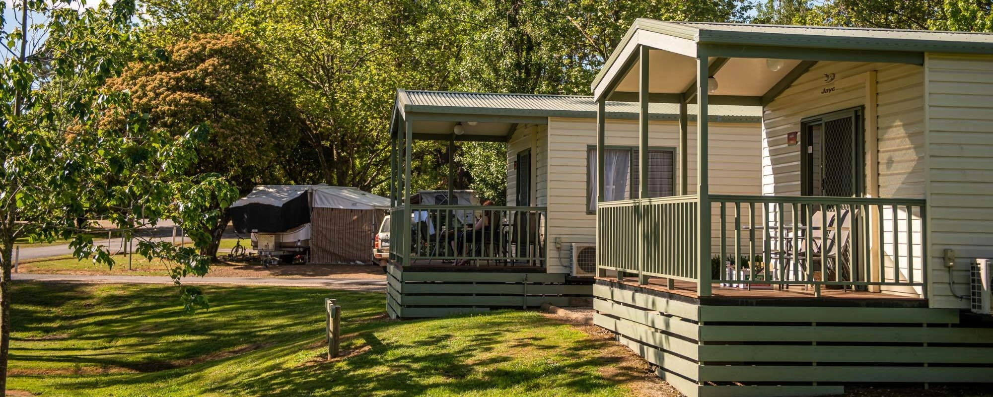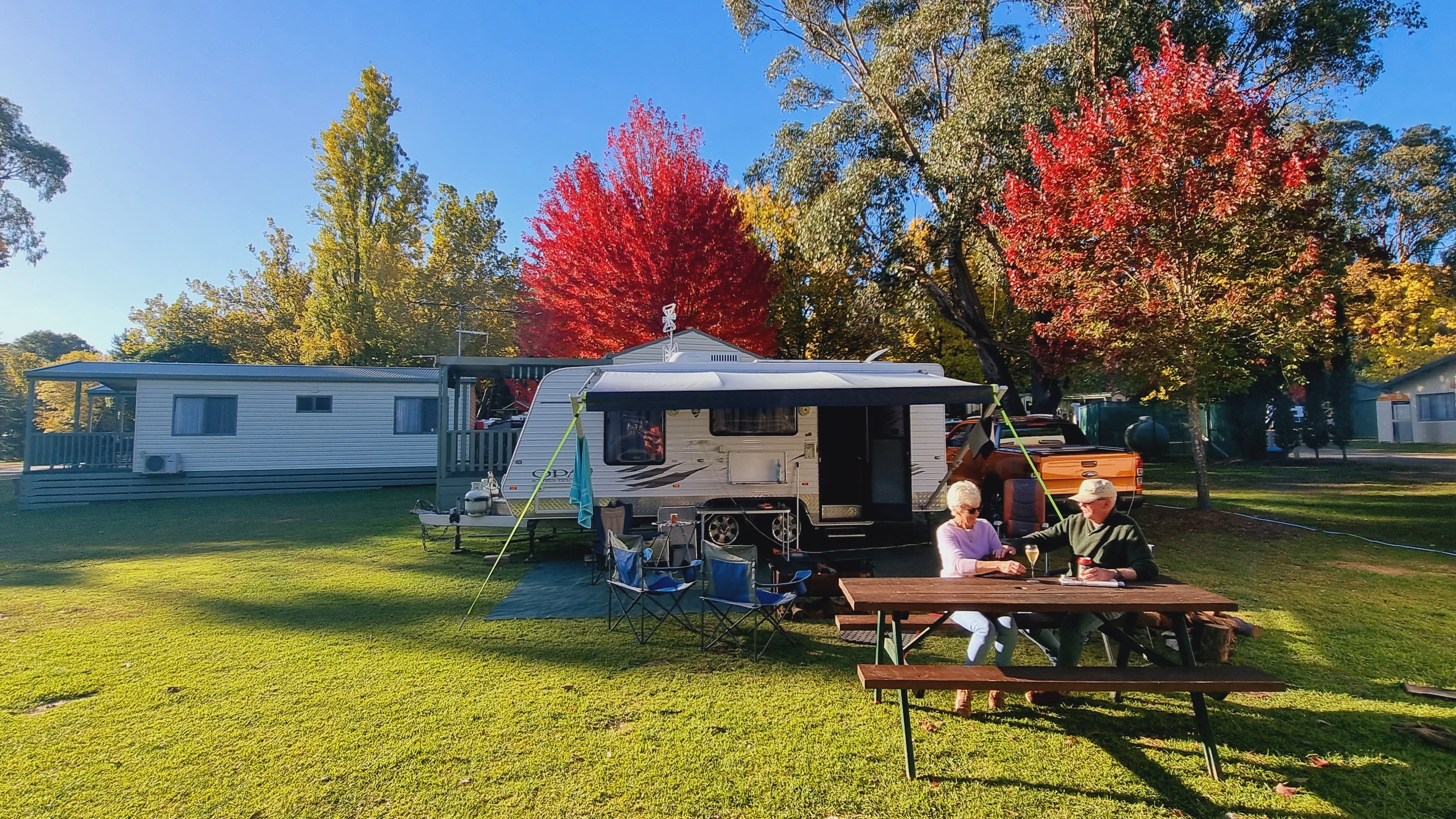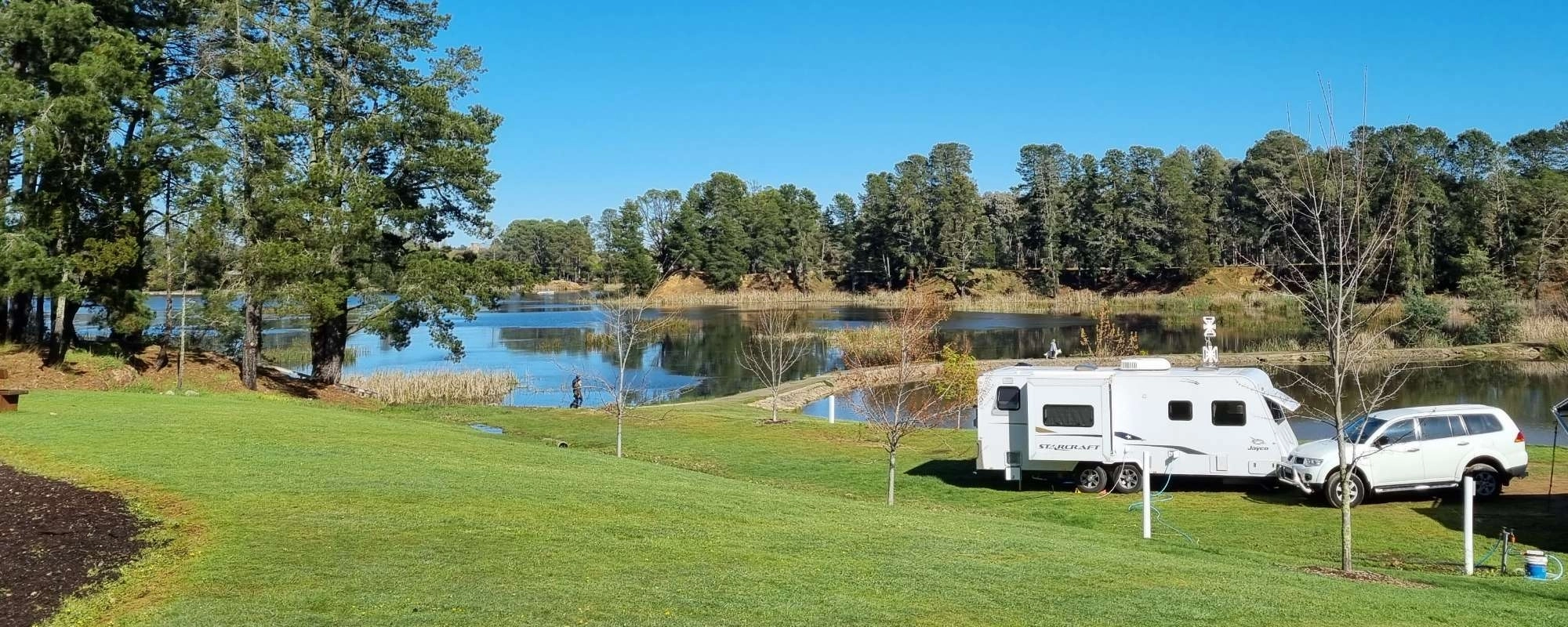 A spacious park in an idyllic green, lakeside location that is just a short walk to all the town of Beechworth has to offer.