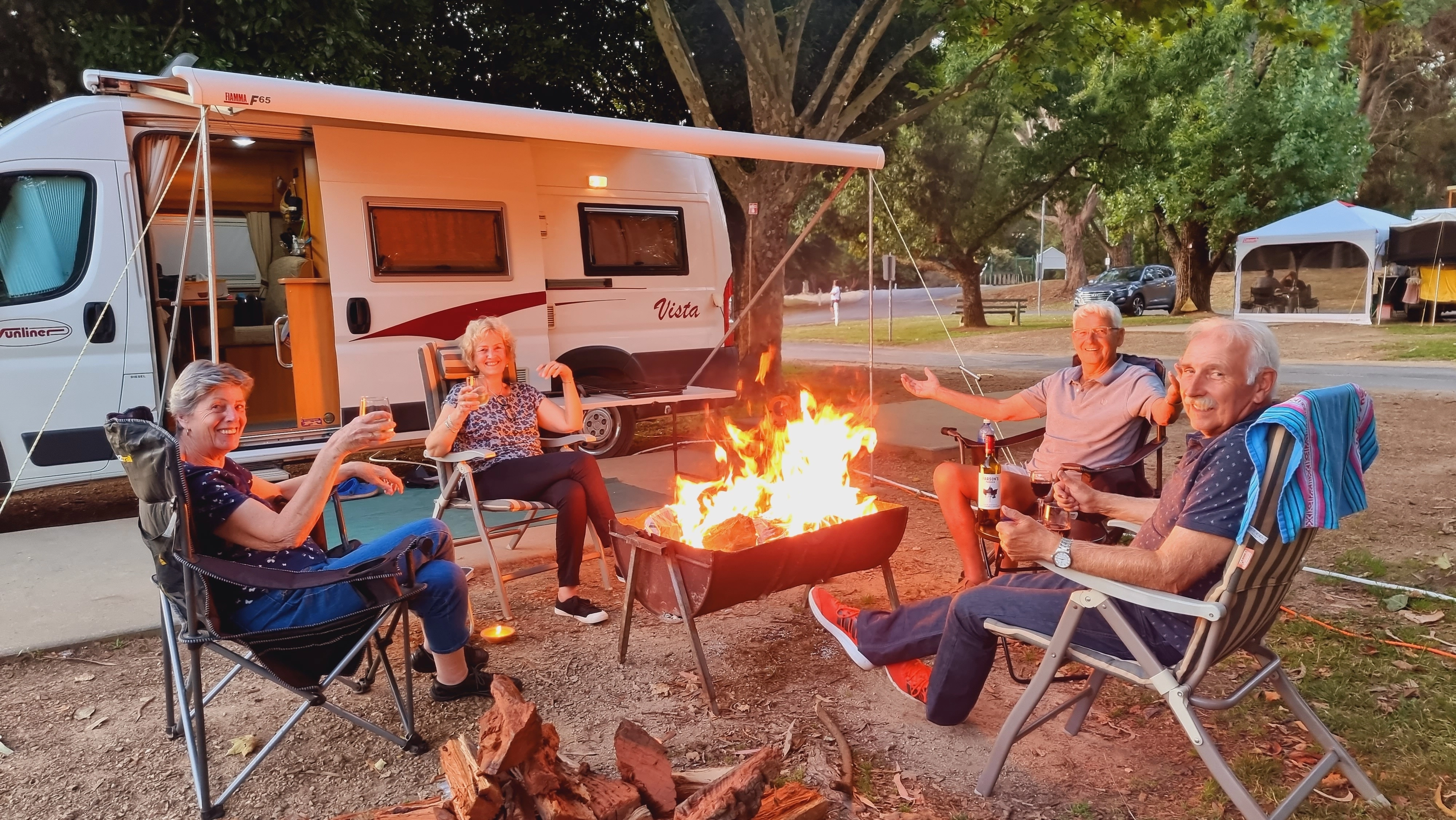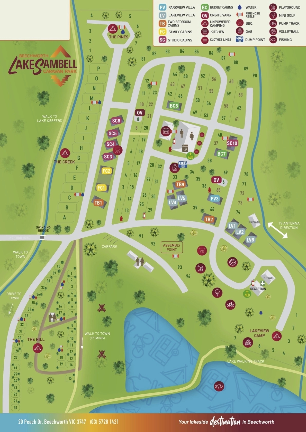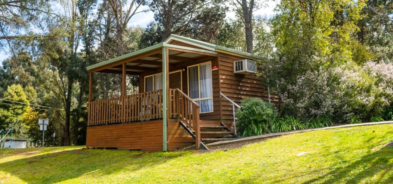 A spacious park in an idyllic green, lakeside location that is just a short walk to all the town of Beechworth has to offer.