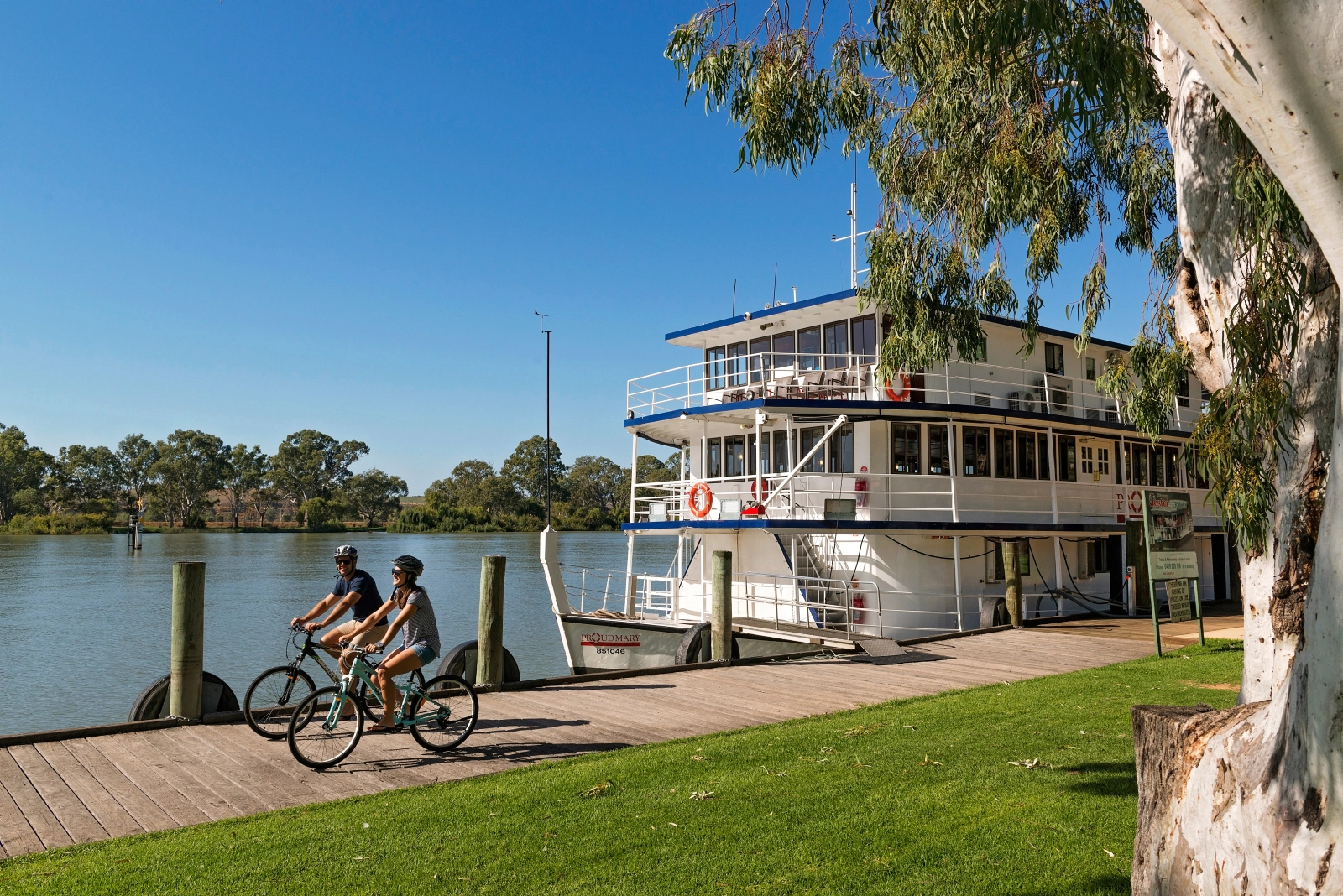 Water view accommodation on the banks of the Murray River in a town that is a haven for motor sport and boating enthusiasts alike.