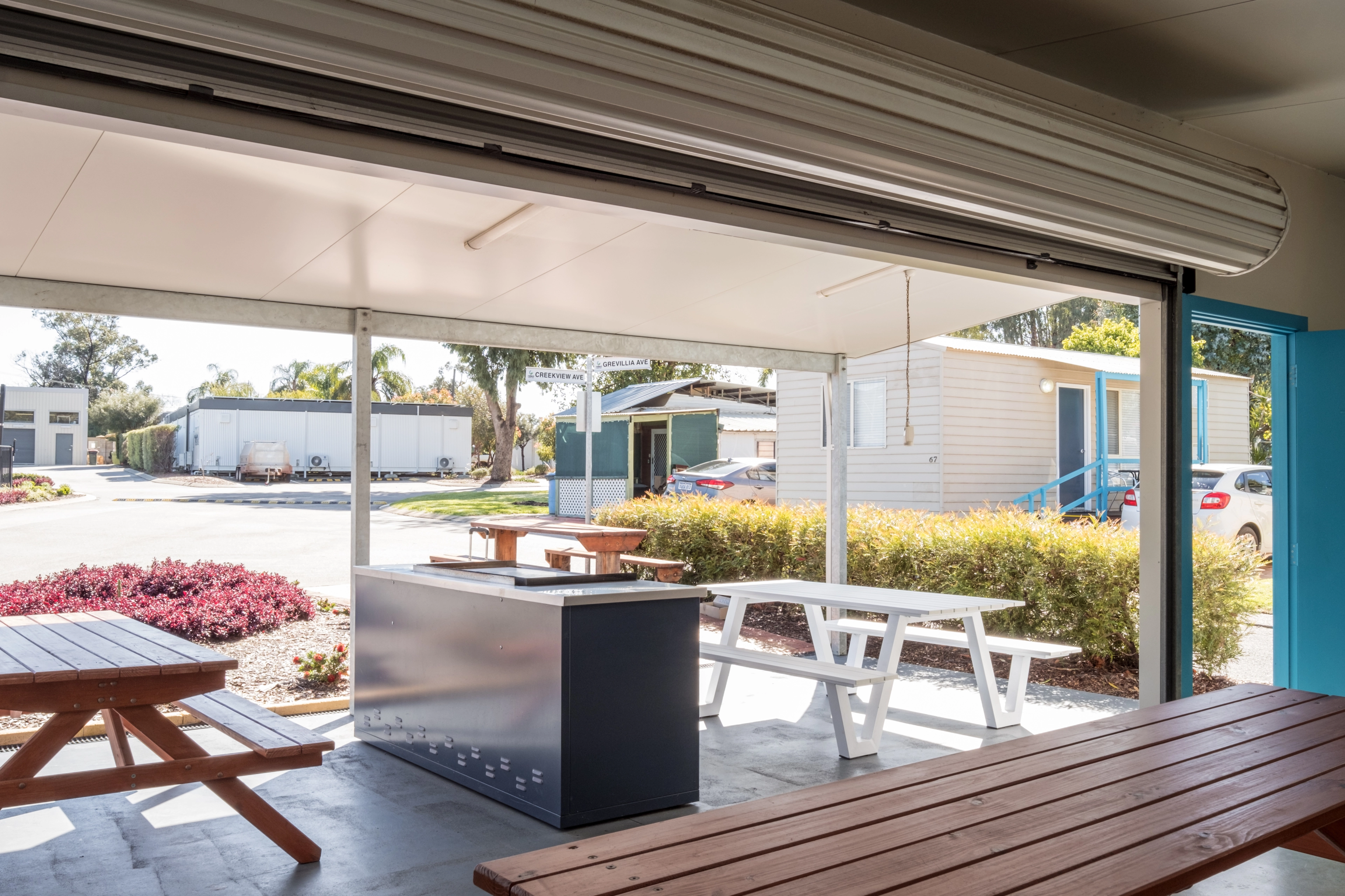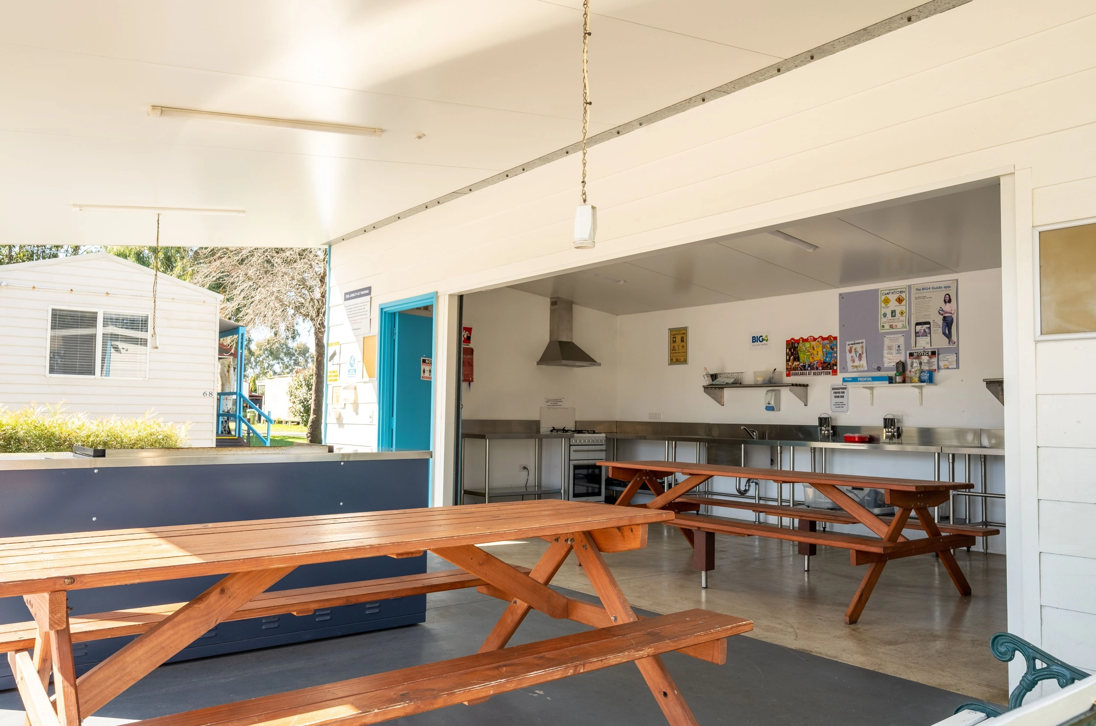 If you’d rather stay in, the park makes it easy to self-cater. You’ll find a spacious Camp Kitchen, communal BBQs and plenty of outdoor spots to enjoy a quiet dinner under the gum trees.