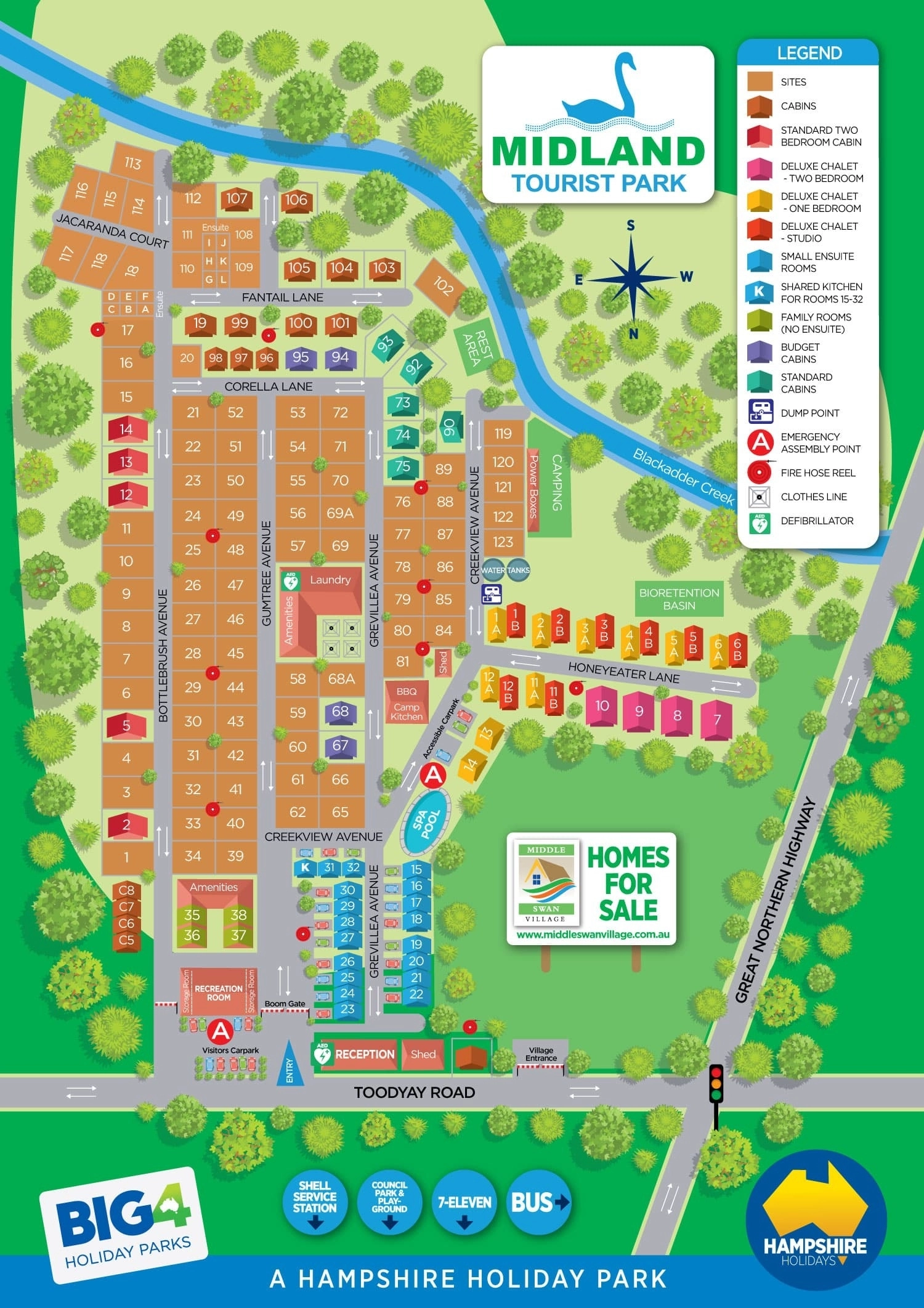 The park sits in a handy spot just a few minutes’ drive from Midland’s main centre, where you’ll find supermarkets, cafés and shops for all the essentials. If you’re planning a day out in the Swan Valley or Perth Hills, you can be on the road and exploring in under ten minutes.