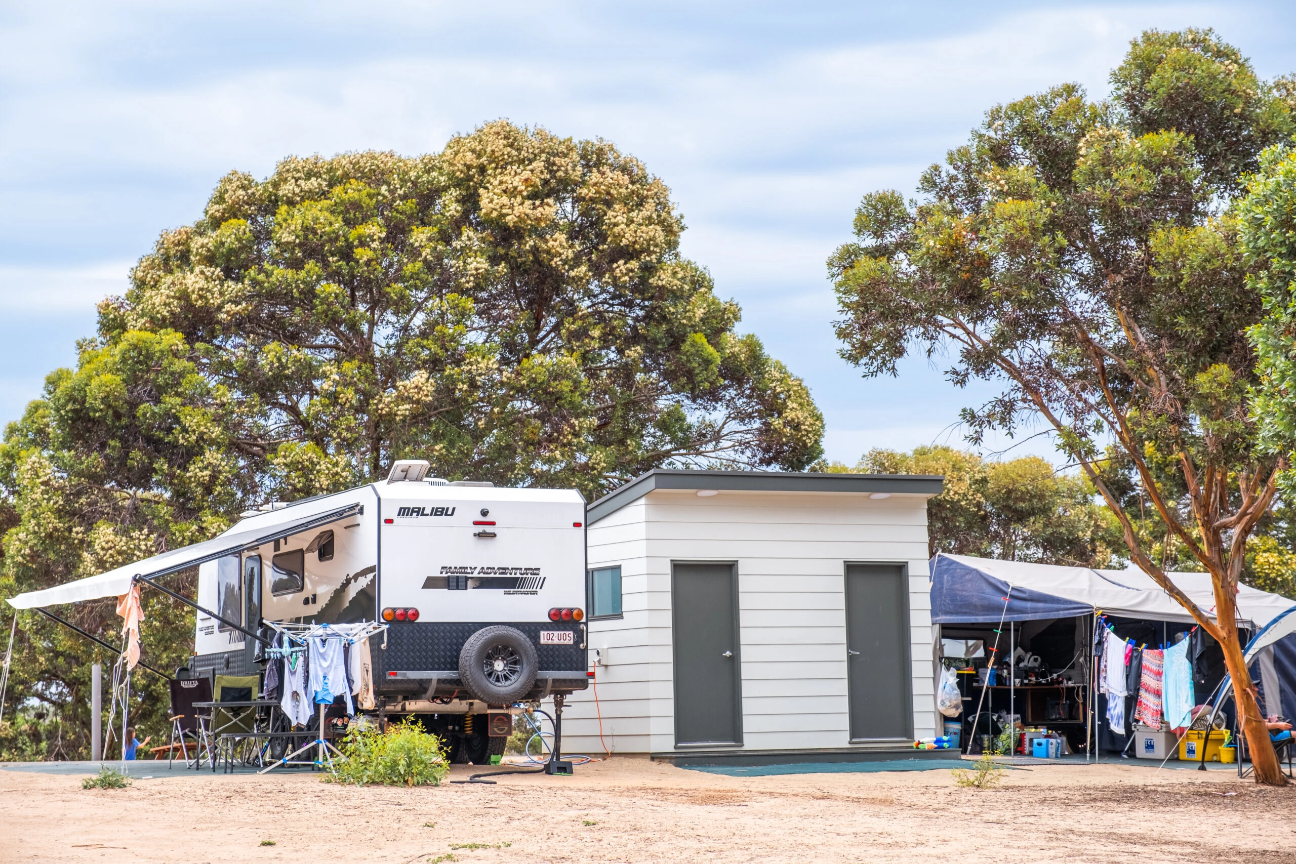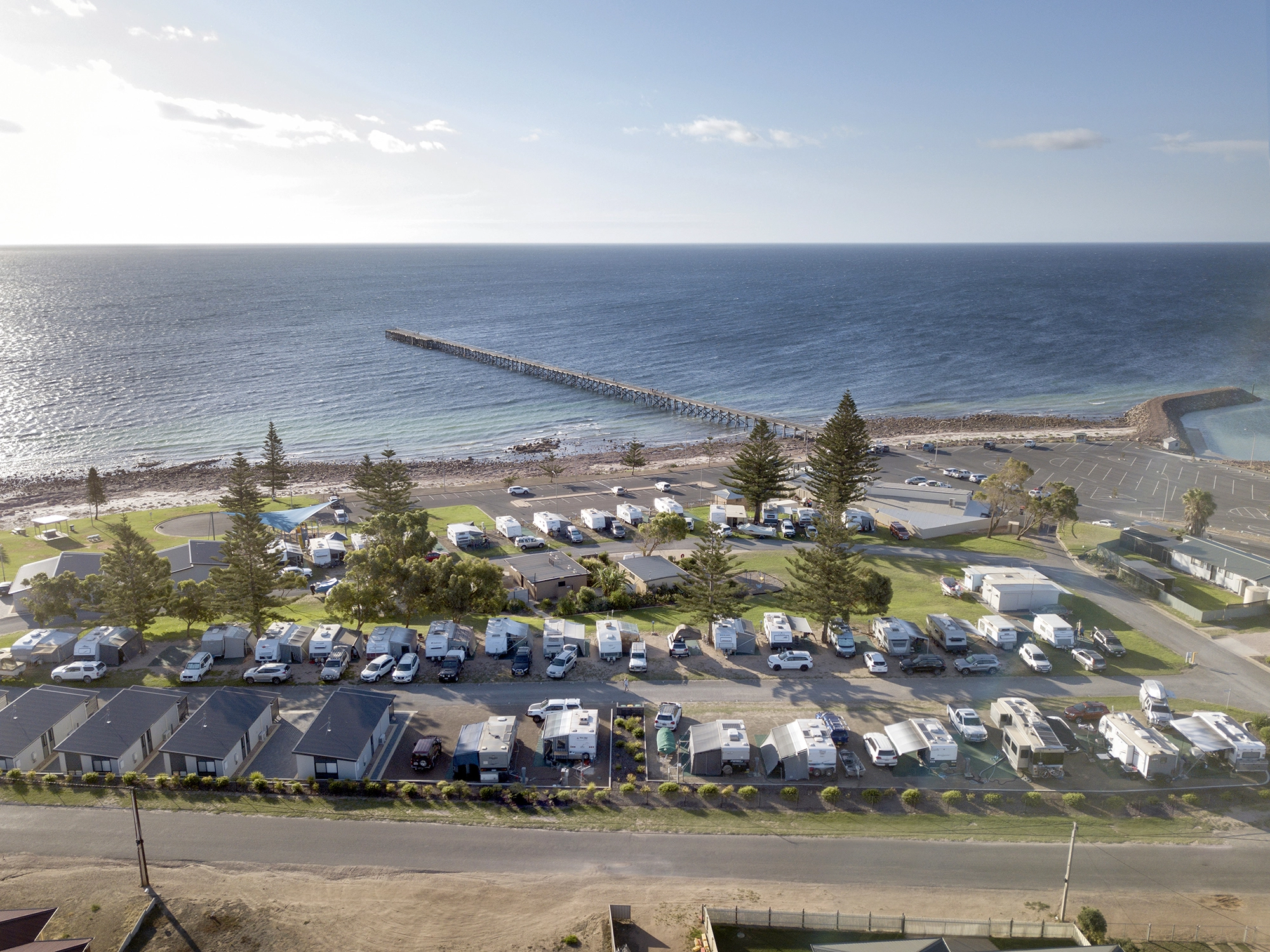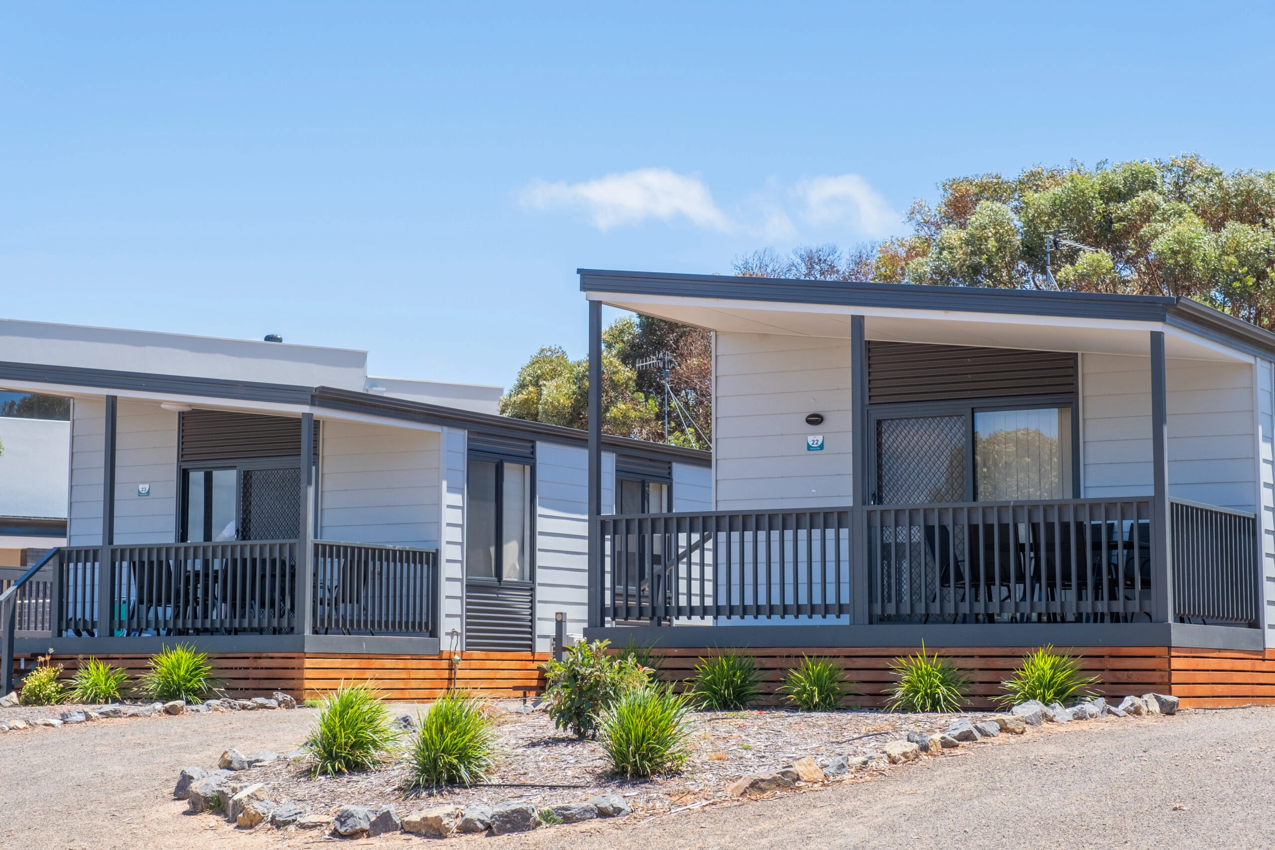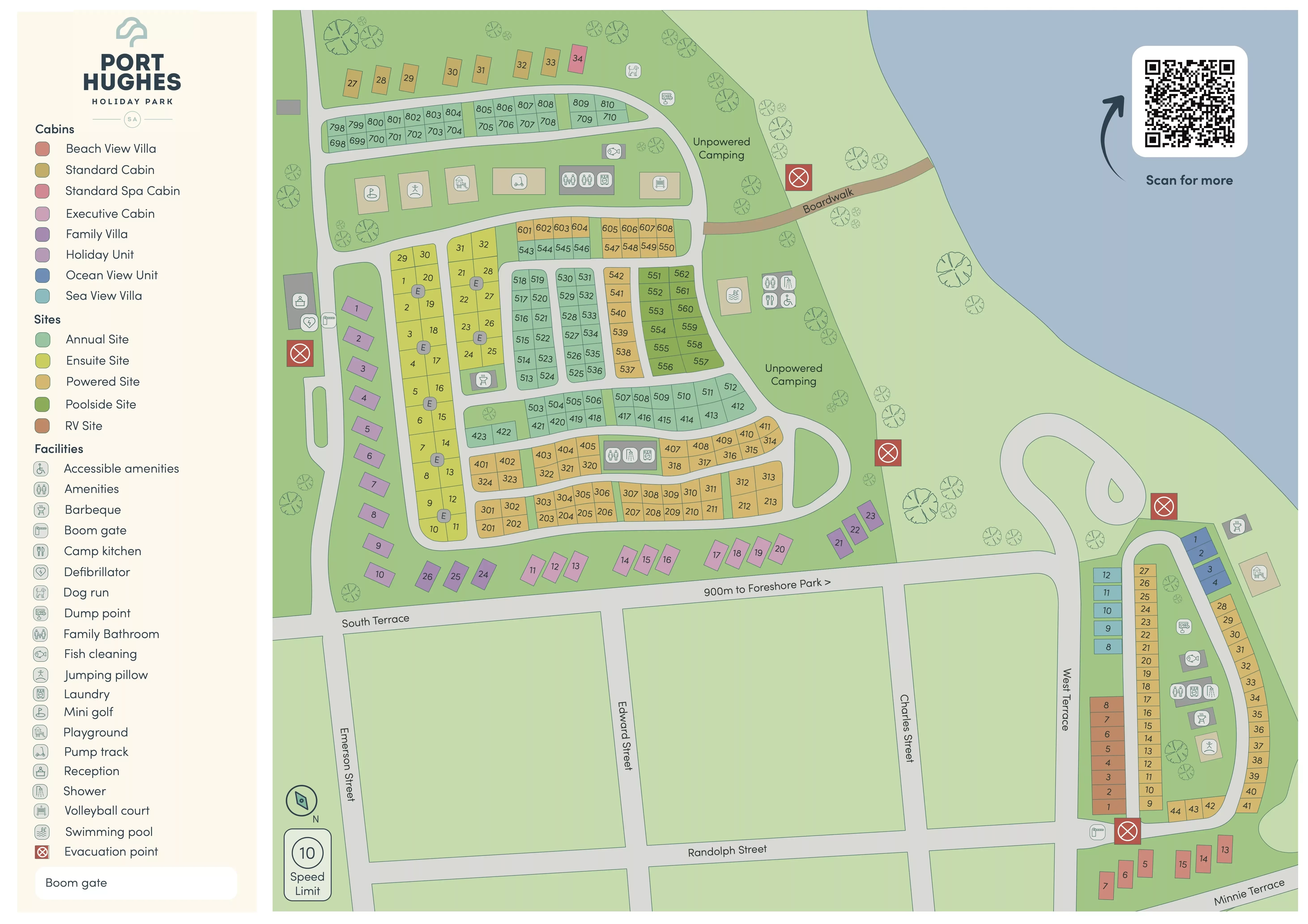 Please note, the Park is split into two sections each with close access to amenities. Both have uninterrupted access to the beach but we’ve labelled the accommodation and sites on the jetty side ‘foreshore’ to avoid confusion.