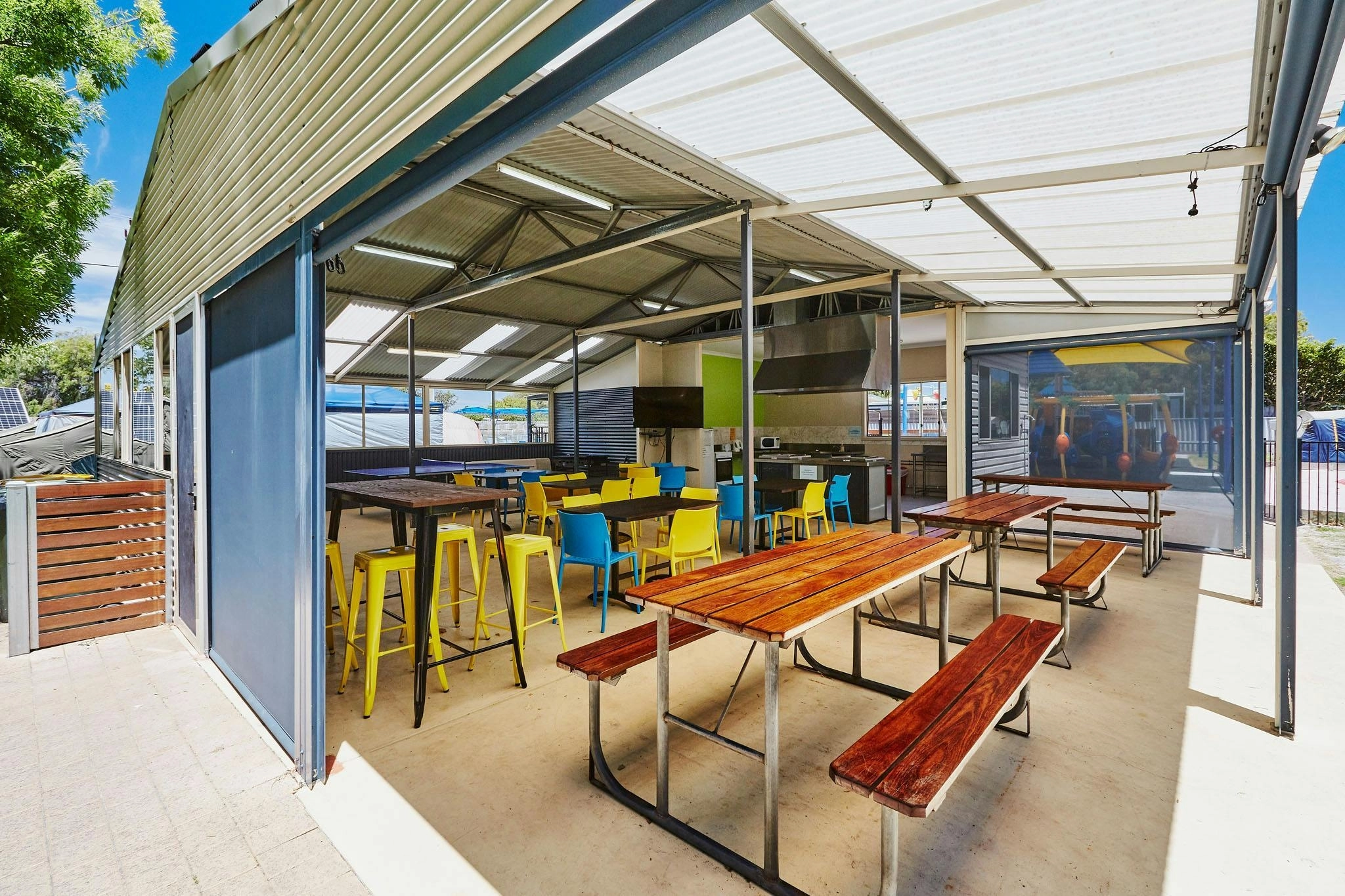 Several Powered Sites are located directly next to the Swimming Pool and Playground areas and whilst there are plenty that aren’t, you can assure you avoid landing in one of these by booking a Powered Slab Site.