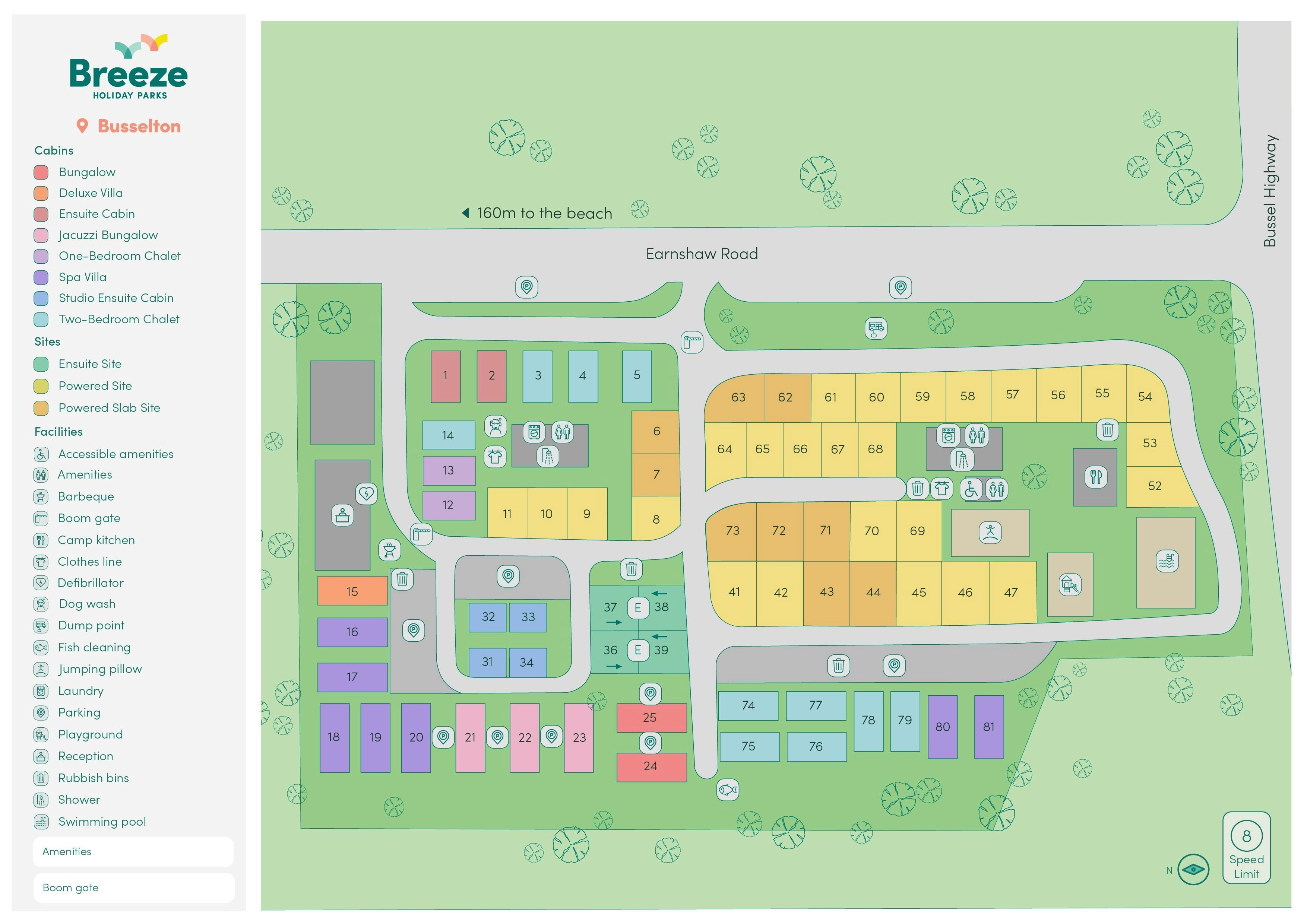 Spacious sites and roofed accommodation with a little extra touch of luxury in a beachside location just outside of the action of the main strip of Busselton.