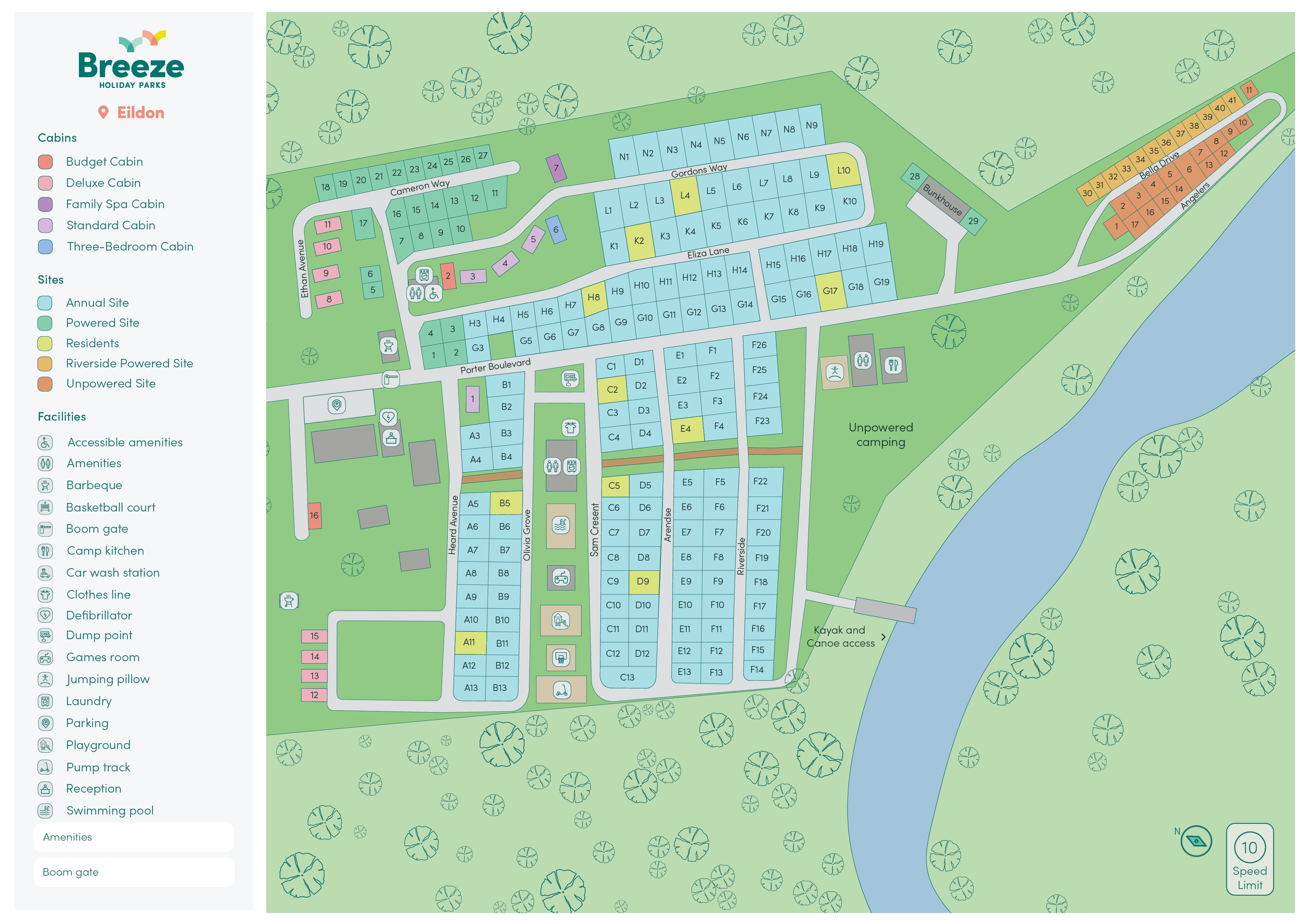 There isn’t much within walking distance of the park, so be prepared to hop in the car or jump on a bike if you want to get into town, located 4km up the road.
