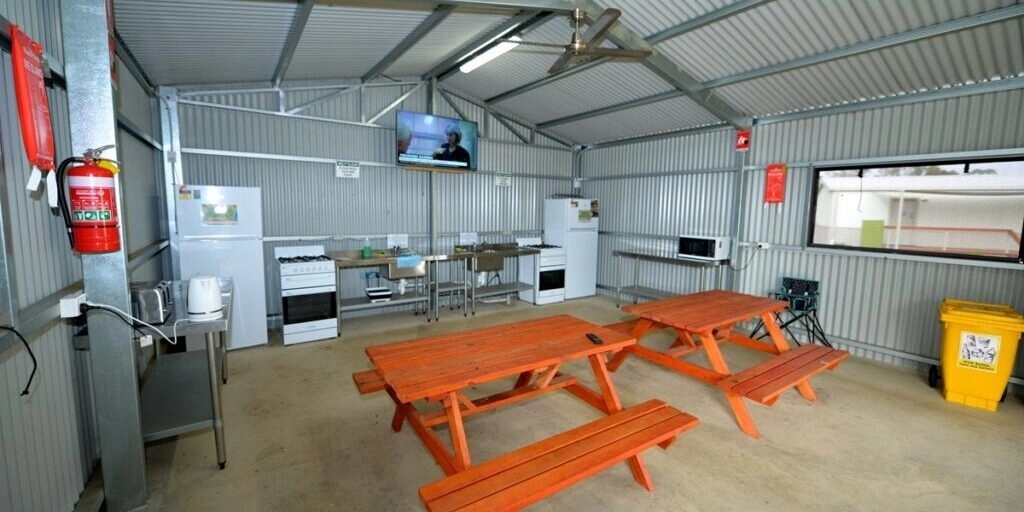 For those who prefer to dine at the accommodation, there's a well equipped Camp Kitchen area including multiple tables set in an undercover shed, as well as multiple BBQs dotted throughout the property.
