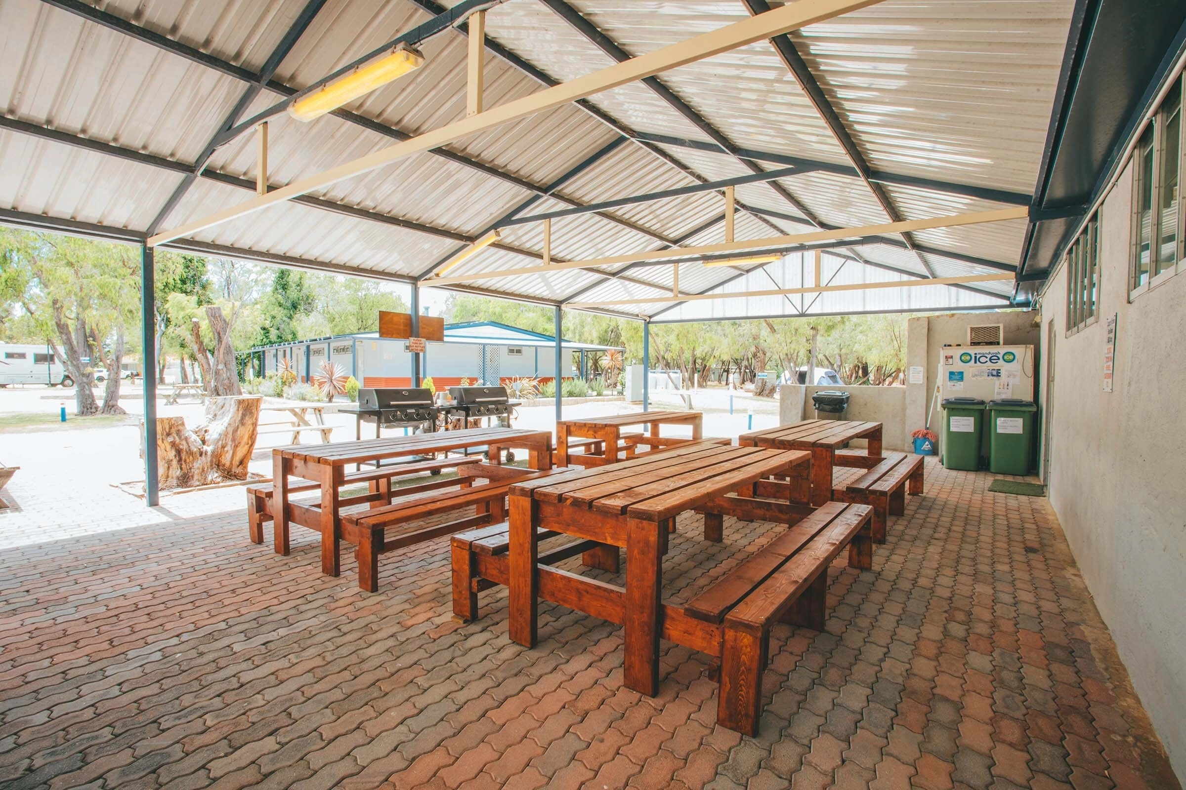 The Park offers a camp kitchen equipped with essential cooking facilities, including a stovetop, oven, microwave, and fridge. Additionally, there is a sheltered BBQ area, perfect for outdoor meals. The Estuary Store next door stocks basic groceries, snacks, ice, bait, and fuel, ensuring you have the necessities without leaving the park.
