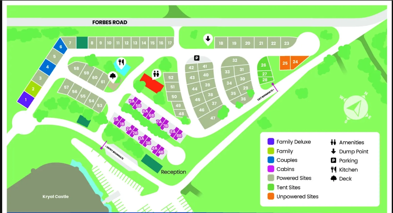 Back in the accommodation precinct, the camp kitchen and BBQ area are clean, equipped with plenty of bench space, and undercover seating that makes it easy to settle in after a day of exploring the castle. The kids can run around pretending to be knights whilst the adults prepare a low-key cook-up.