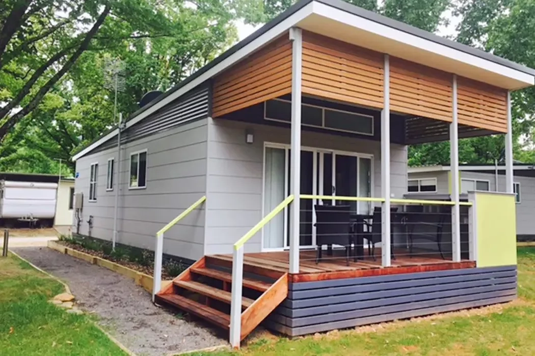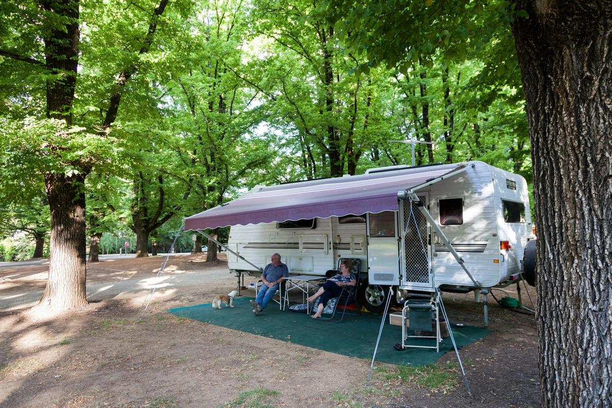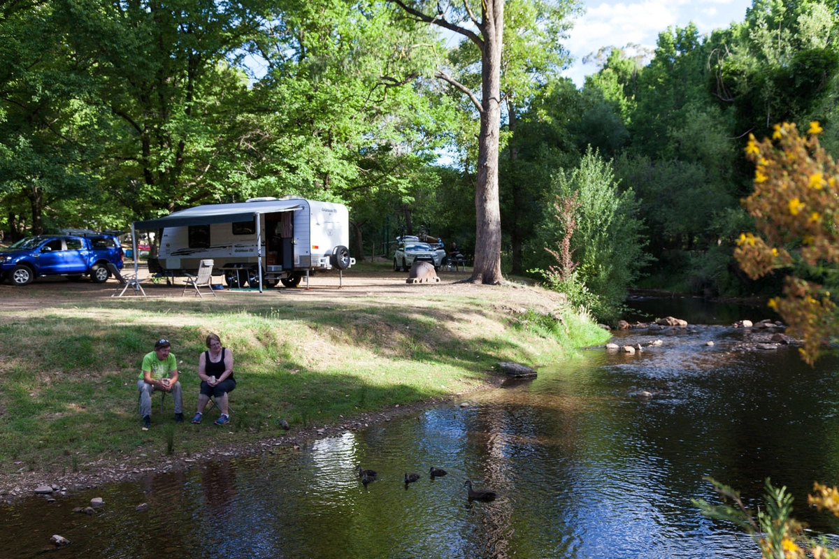 A spacious park in an idyllic green, lakeside location that is just a short walk to all the town of Beechworth has to offer.