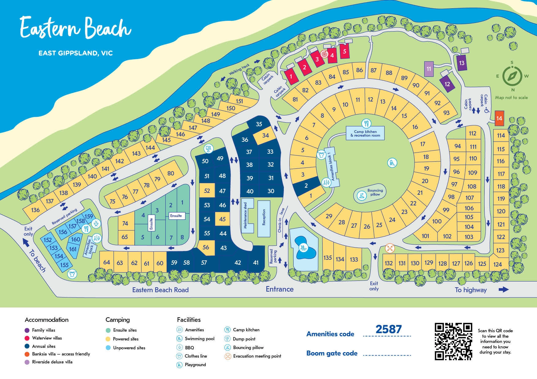 Check In time is from 11am for Sites and 2pm for Cabins and Villas, Check Out is 10am for all accommodation.