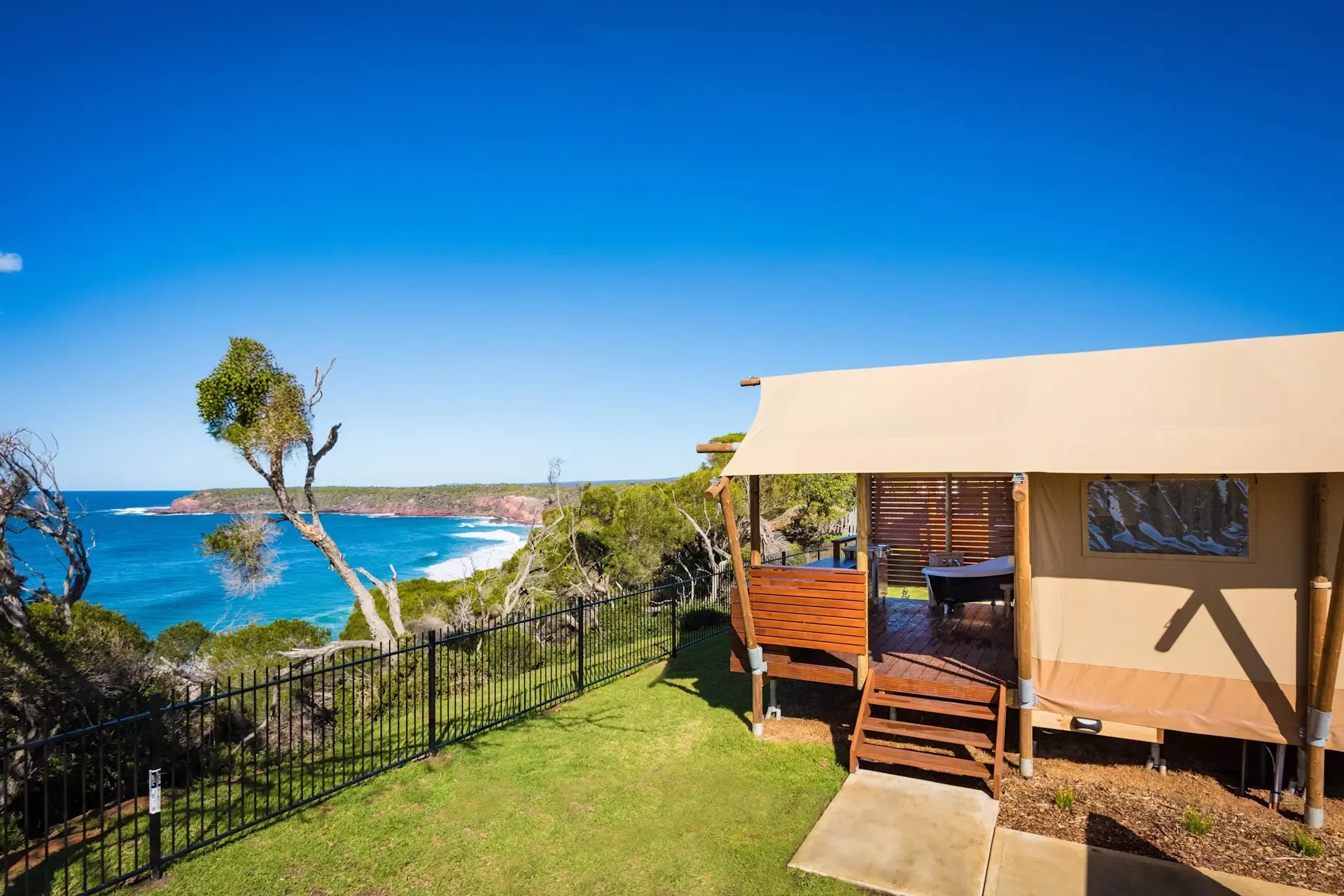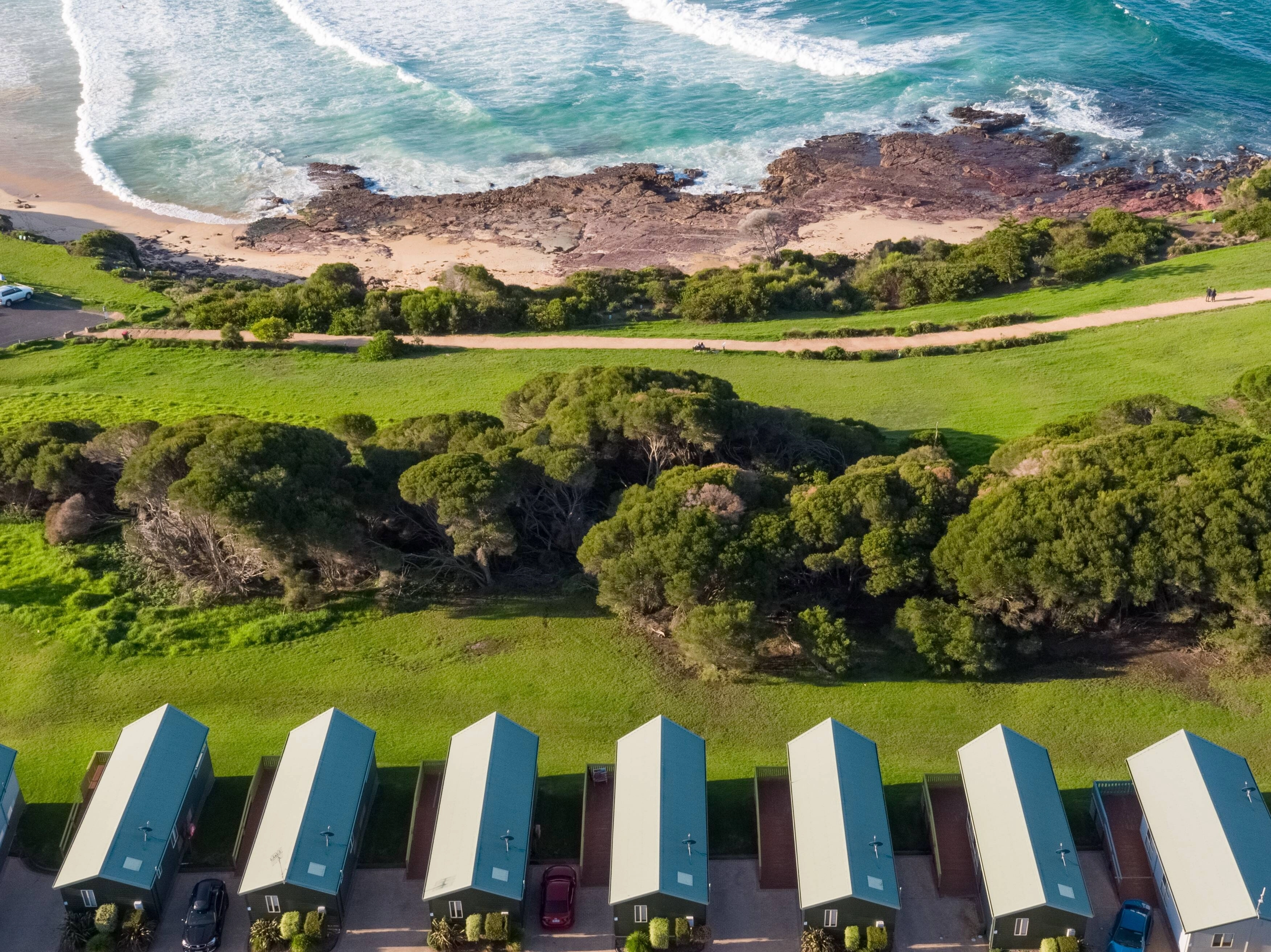 Sites, Cabins and Glamping set in a nature-first, bushland location home to many kangaroos and across the road from Tathra Beach.