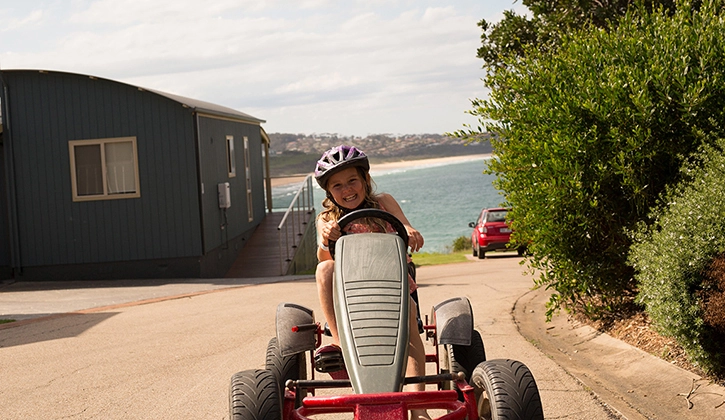 The park has electric bikes for hire which we think is a great way to explore the unique geography of this area and get a sense for where everything is. When the sun is out at a location like this our priority is going for a swim, and whilst we love the resort style swimming pool at the park, a short walk away you’ll find Bar Beach. With a unique location in the channel between the lake and the ocean it's a beautiful spot to swim in turquoise waters.