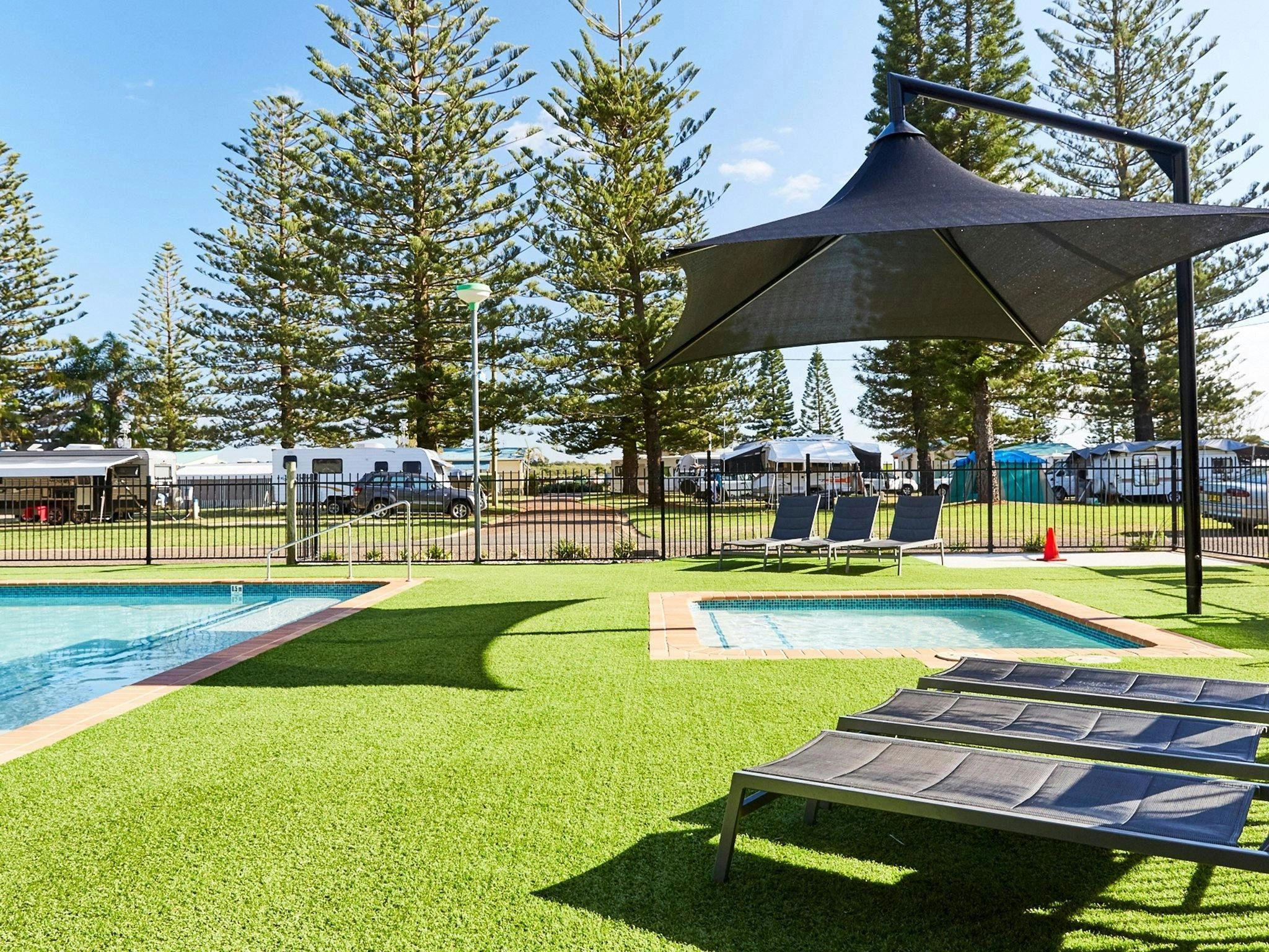 At the park itself, it’s easy to spend an afternoon by the pool or wandering out along the breakwall to watch the waves crash in. Town Beach is right at your doorstep too, which makes those spontaneous swims or a quick surf session part of your daily rhythm.