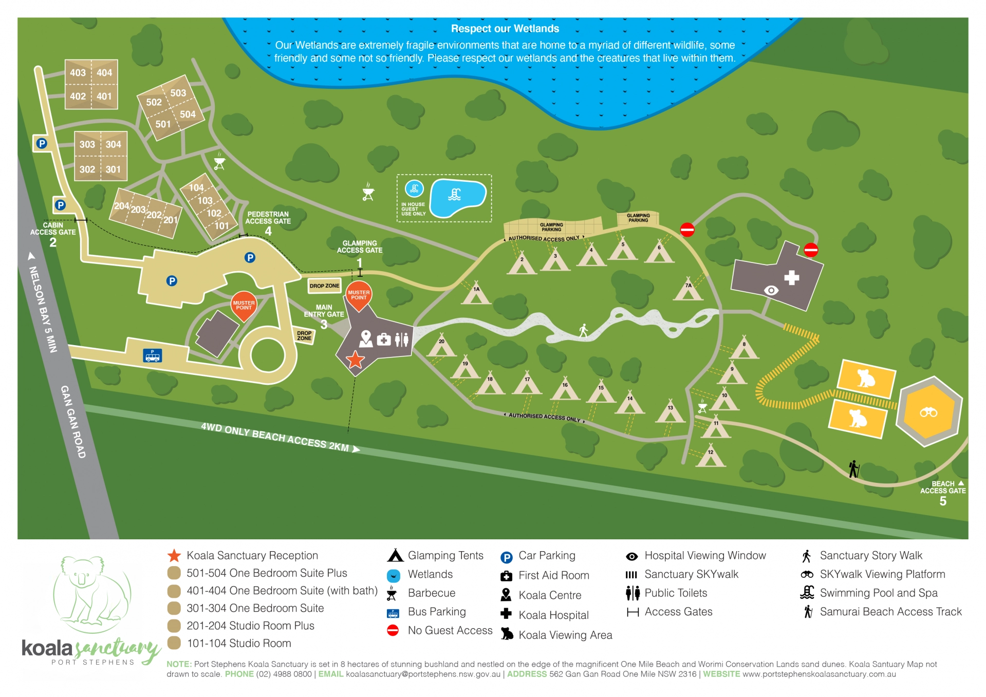 Whilst you won’t find much within walking distance, the Port Stephens Koala Sanctuary occupies a somewhat central location within Port Stephens and is an easy drive to the various beaches and townships where you’ll find the majority of restaurants, cafes and bars.