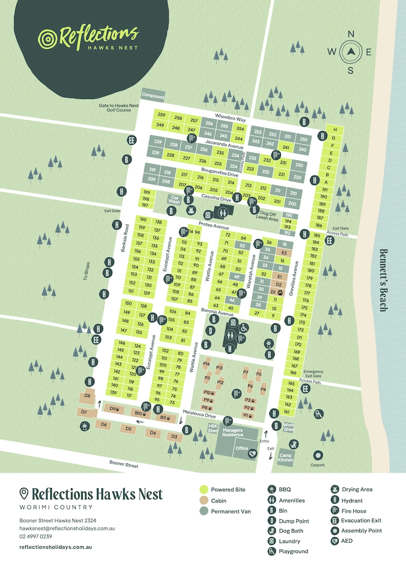 A modern and well maintained park located directly opposite one of the most beautiful beaches on the East Coast of Australia.