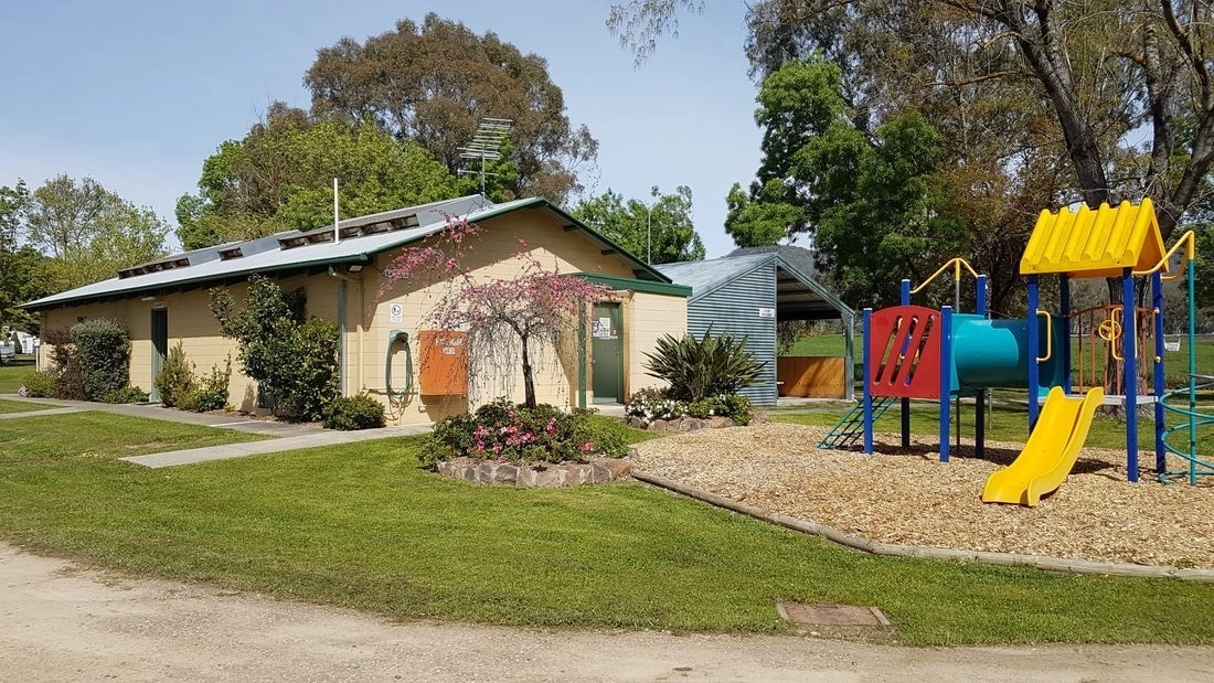 A spacious park in an idyllic green, lakeside location that is just a short walk to all the town of Beechworth has to offer.