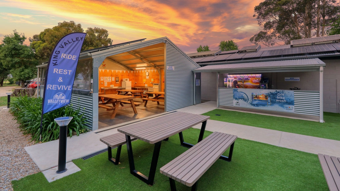 The park features a well-equipped camp kitchen with an oven, microwave, kettle, and plenty of bench space. BBQ facilities are coin-operated ($1 per use).