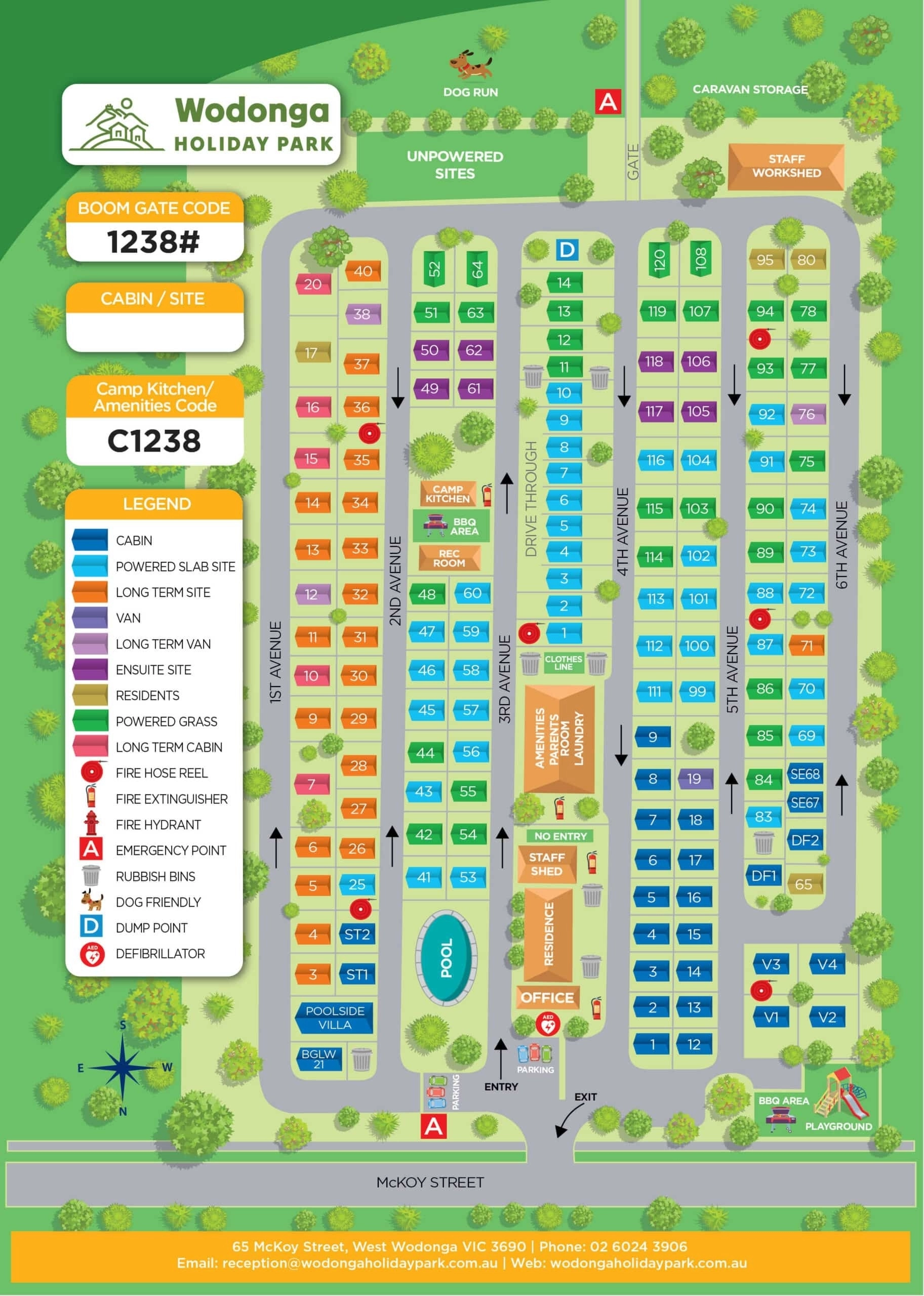 A spacious park in an idyllic green, lakeside location that is just a short walk to all the town of Beechworth has to offer.
